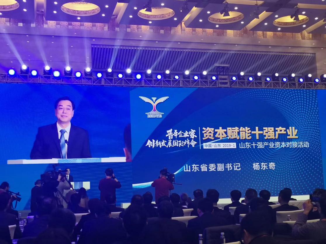 2019年1月14日,青年企业家创新发展国际峰会—“资本赋能十强产业”活动在济南山东大厦举行,省委副书记杨东奇、副省长刘强参加会议。
